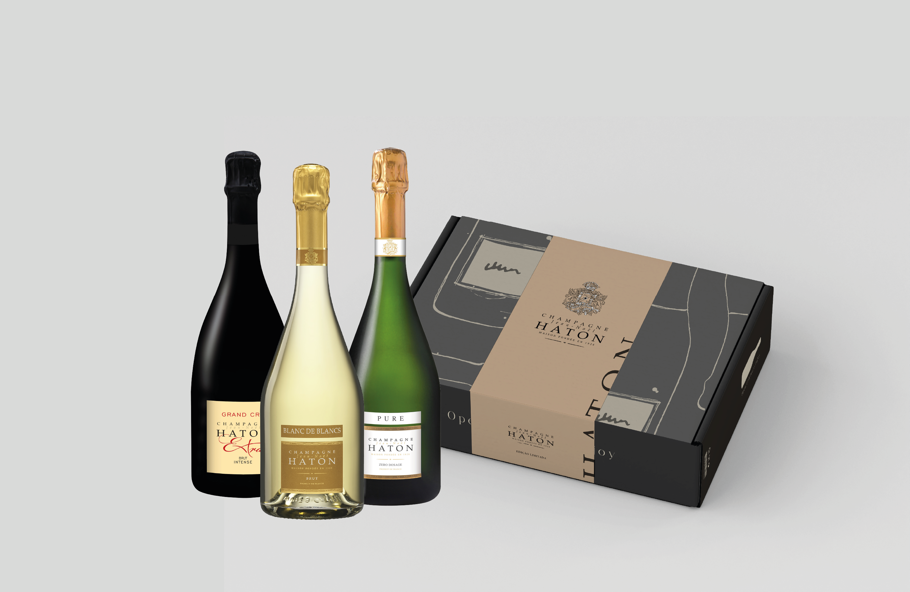 Um coffret da Maison Haton com 3 referências de Champagne: